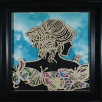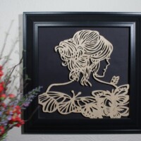 This image is cut from 1/4 inch board backed with black paper. Please note: one of the variations is in a 1 inch frame and is cut from 1/32 plywood.