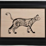 This image is cut from a 1/4 inch board and is inspired from ‘black works embroidery”.
