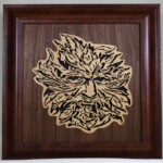 Green man images are new to me. Apparently, this concept has been around for a long time. Usually, I would use a slab for this type of project but did not have an appropriate piece of wood. The inlay was a nice compromise. This green man has a particularly sour puss. That’s okay, it was a fun project to cut.