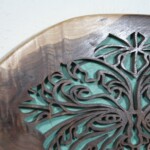 The leafy green man image from Roshaan Ganief is a favorite of mine. I found this beautiful piece of walnut and placed handcrafted paper behind it. I like the idea that a green man image found its home within the walnut slab: I hope you like it too.