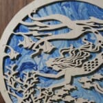 This image is cut from 1/4 inch maple inlay to walnut backed with handcrafted paper.