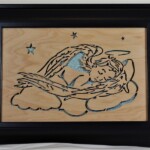 I saw this image on a FB scroll saw community site. I loved this sweet image and decided to cut it for a Mother’s Day show. Which was postponed in the year of Corona virus. It turns out I cut it twice. Once for this bamboo frame and again, for a slightly larger frame.