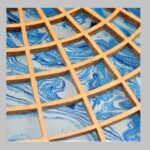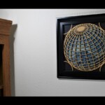 A 1/4 inch thick board cut to evoke a globe, backed with handmade paper.